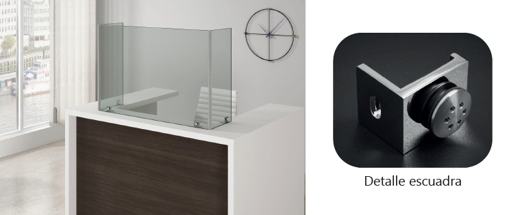 MAMPARAS CON MONTAJE ANGULAR CON CAJEADO:
