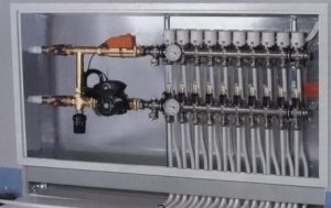 El armario que albergará los colectores se debe colocar a ser posible en un lugar centrado de la instalación y a una altura que permita que los tubos puedan curvarse y unirse al distribuidor sin ningún problema.