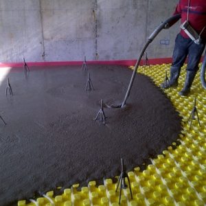 Dentro de cada estancia el vertido se realiza empezando desde el centro y esparciendo el mortero lentamente, de forma que el film de la banda perimetral se quede por debajo del mortero.