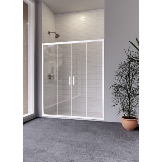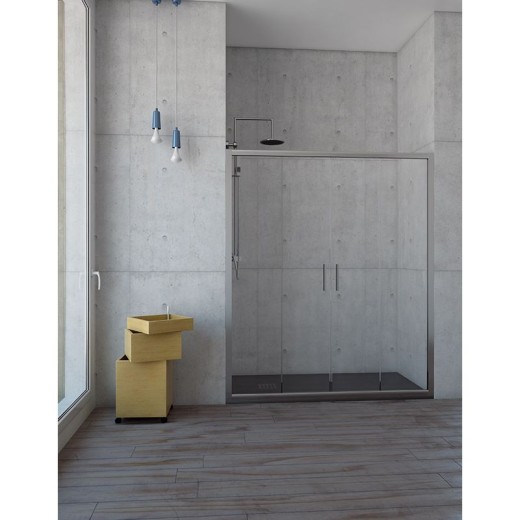 Shower front consisting of 2 fixed and 2 sliding doors with lower guides.