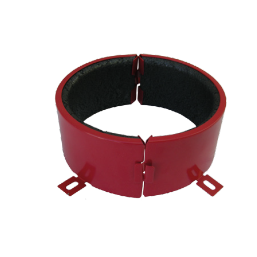 El collarín se fija al soporte y queda abrazando y rodeando la tubería a sellar.