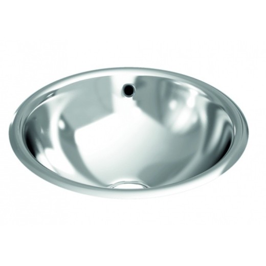 Circular washbasin for countertop with curved wing, made entirely of AISI 304 stainless steel sheet.