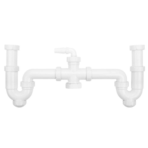 Sifón curvo doble con racors (extensibles) orientables y toma de electrodomésticos (tuercas locas).