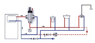 El mezclador permite la distribución del agua caliente sanitaria a temperatura constante; una temperatura no demasiado elevada impide las incrustaciones calcáreas y las posibles corrosiones.