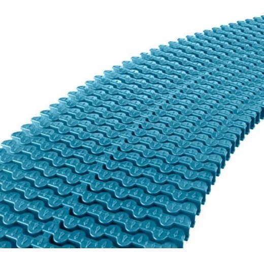 • Formada por placas de módulos para tramos rectos o curvos (radio exterior de 1 ó 2 mts), ensambladas entre sí por unión clicada macho-hembra, que permite cierta elasticidad de montaje, a la vez que absorbe posibles dilataciones por las diferencias térmicas a las que la rejilla se ve expuesta.