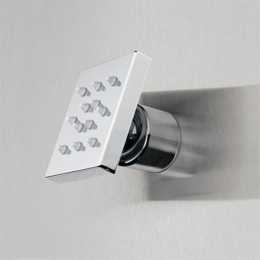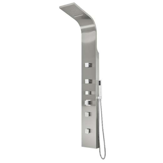 La columna de ducha progresiva Meliana dispone de Rociador de ducha con efecto lluvia, 4 Jets de latón cromado y mango de ducha para una experiencia relajante y placentera.