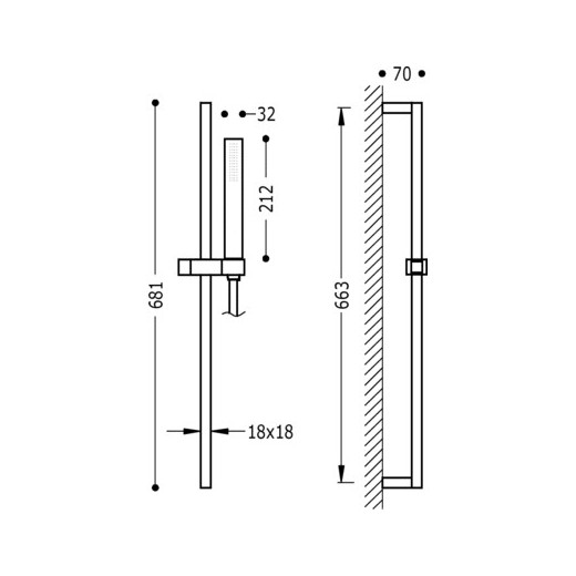 Slide bar with water tap to wall and cylindrical shower TRES
