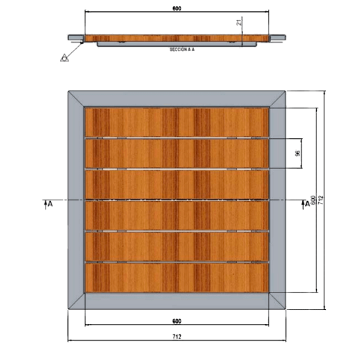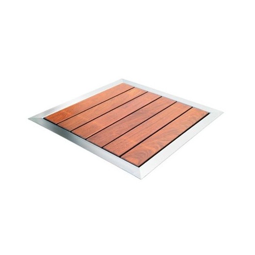 Plato de ducha para los modelos de ducha PLUVIUM combinado en madera-acero inox. AISI-316 satinado.