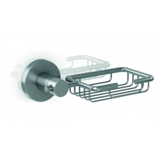 Jabonera compuesta de un soporte a pared, un florón cubre soporte y cesta para jabón.