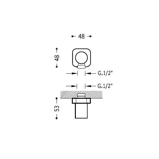 Codo con toma a pared rectangular para flexo toma agua 1/2”