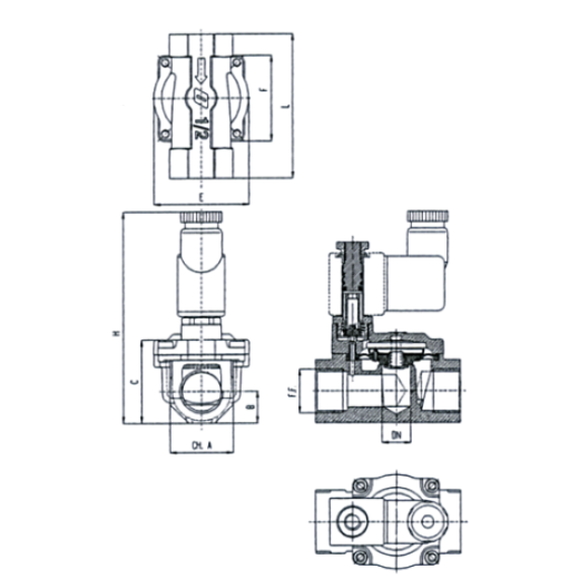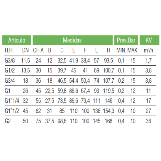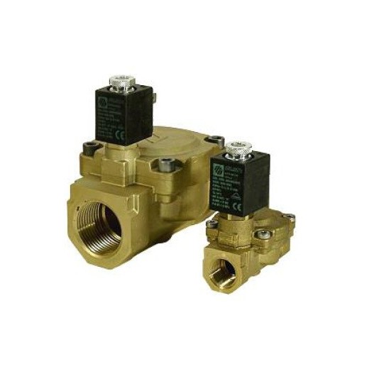 Pensadas para la interceptación de fluidos líquidos y gaseosos con viscosidad no superior a 37 CST (o 5° E). Se trata de electroválvulas a membrana, servocomandadas, con conexiones de entrada y salida rosca hembra BSPP (gas cilíndricas), cuerpo y cubrición en latón CW6 17N, partes magnéticas en acero inoxidable y membrana en NBR para agua (estándar), EPDM peroxídico, FKM (FPM) u otros elastómeros según necesidades. Son del tipo 2/2 vías (2 vías, 2 posiciones) normalmente cerrada y normalmente abierta. Se comercializan con bobina (grado de protección IP00) + conector (grado de protección IP 67 según la norma DIN40050).