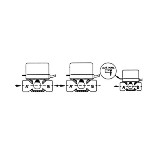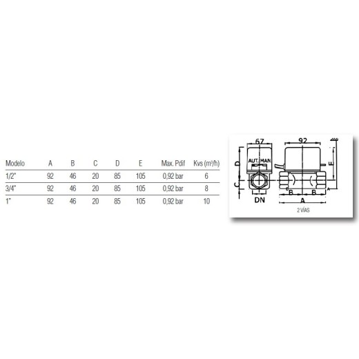 Motorized 2-way valve with micro "ORDESA", all-nothing action, closing with return spring, manual actuation lever, normally closed.