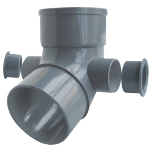 Codo PVC Evacuación M-H 67° Con 2 Tomas Laterales De 50 A-281 ALIAXIS, para instalaciones de evacuación de aguas pluviales y/o de desgüe sin presión.