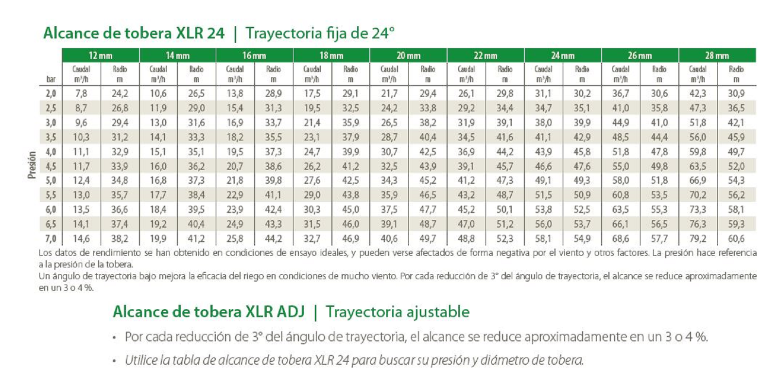 CARACTERÍSTICAS DEL Aspersor De Largo Alcance XLRADJ Trayectoria Ajustable 15°-45° RAIN BIRD