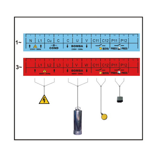 Cuadro eléctrico para grupos de presión o residuales de una sola bomba.