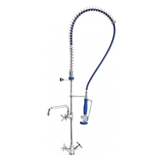 Grifo con caño y grifo mezclador con monturas cerámicas ¼ de vuelta, válvulas antirretorno y conexiones flexibles.