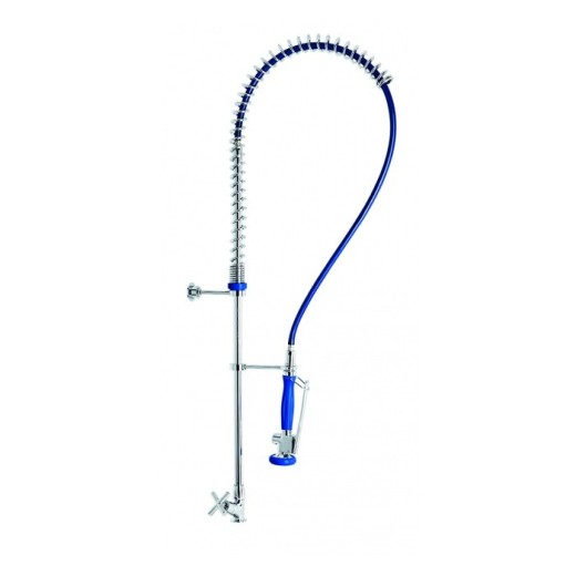 Sistema de muelle:  fabricado en acero inoxidable AISI 304 cromado, regulable en altura con giro de 360º.