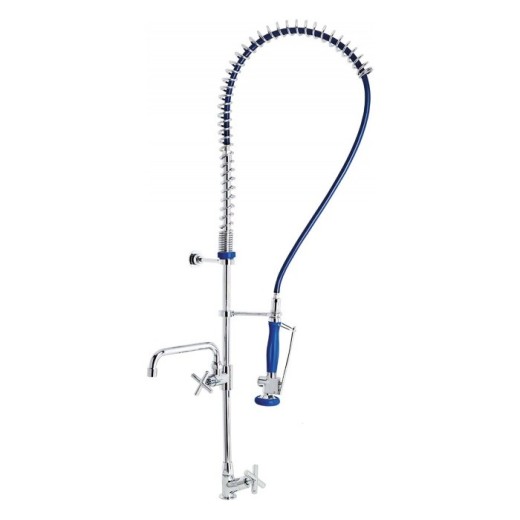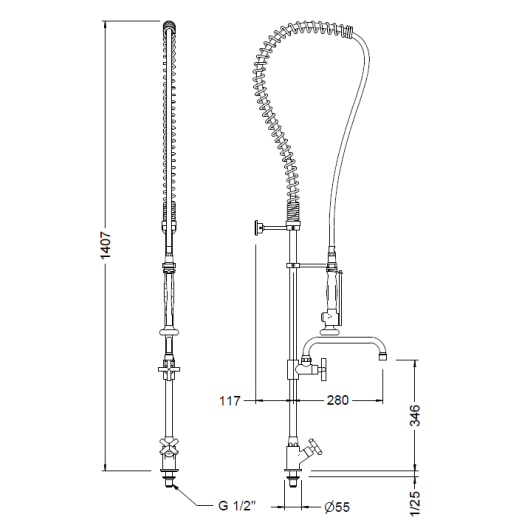 Grifo de encimera vertical: de cocina profesional para ser usado con caño o columna. Cuerpo y base en latón CW617N cromados según EN 248. Dotado de montura cerámica ¼ de vuelta y filtro plástico antipartículas. Incluye todos los elementos de fijación.