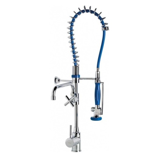 Grifo de encimera mezclador monomando: de cocina profesional para ser usado con caño o columna. Cuerpo en latón CC754S y base en latón CW617N, cromados según EN 248. Dotado de cartucho cerámico mezclador D40, conexiones flexibles y válvulas antirretorno. Incluye todos los elementos de fijación.