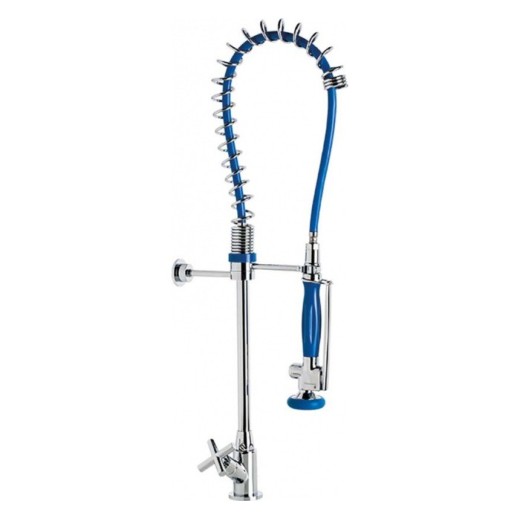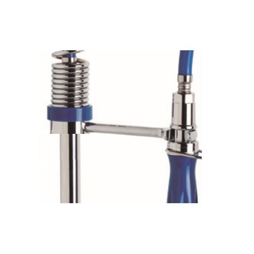 Sistema de muelle:  fabricado en acero inoxidable AISI 304 cromado, regulable en altura con giro de 360º.