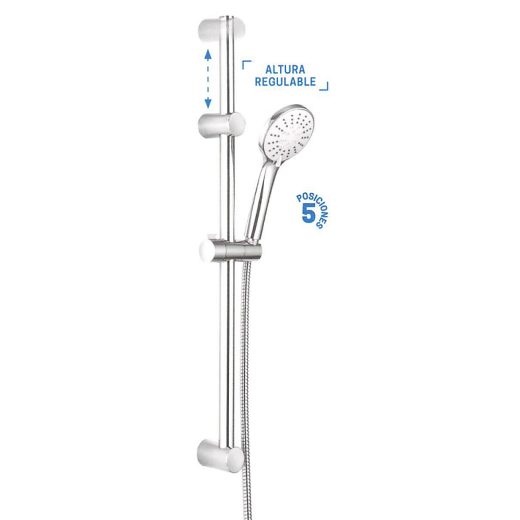 Set de ducha compuesto por barra deslizante, maneral de ducha CALIMA y flexo de PVC.