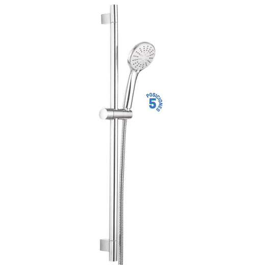 Set de ducha FINE compuesto por barra deslizante, maneral de ducha y flexo de PVC.