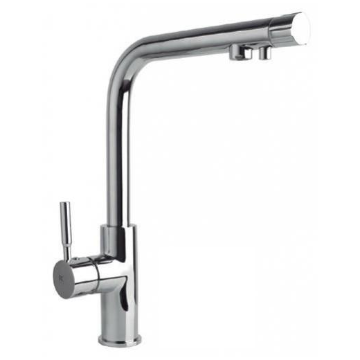 Grifo monomando para fregadero con dos salidas de agua, una para el agua corriente normal y la otra para la salida de agua osmotizada.