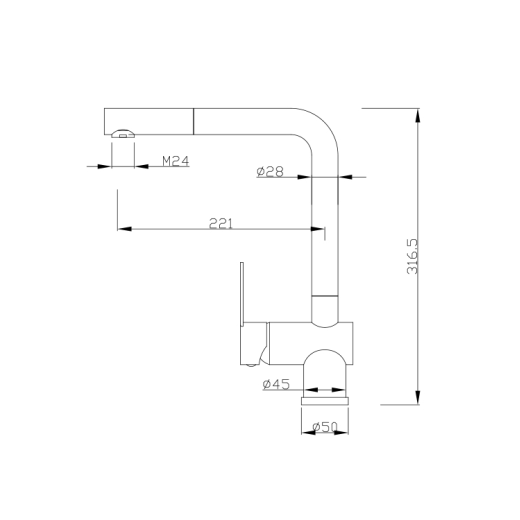 Grifo Monomando De Caño Curvo Fregadero Vertical LEX-TRES