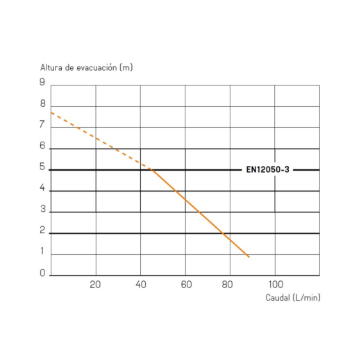 Evacuación horizontal (hasta con pendiente del 1%): 100 m.