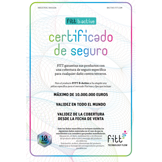 FITT B-Active aumenta la seguridad, el funcionamiento y la duración de las instalaciones de piscinas enterradas porque está diseñada y realizada para garantizar: RESISTENTE, GARANTIZADA, SEGURA.