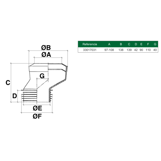 - Ref. 33017031: 99-108 mm. (wc) / 110 mm. (desagüe).