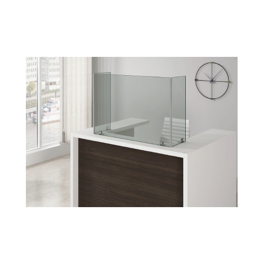 Ideal para mesas y mostradores de atención al público, de 80 cm. de altura, y anchura según las necesidades (entre 80 y 150 cm.)