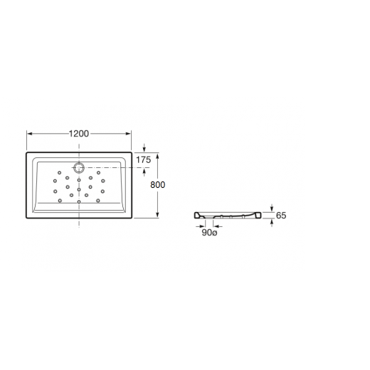 • Longitud: 1200 mm. Anchura: 800 / 750 mm. Altura: 65 mm.