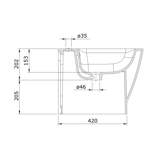 Bidé de diseño con orificios de fabrica para tapa gama LOOK de UNISAN.