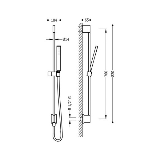 Barre coulissante avec robinet d'eau mural et douche rectangulaire TRES