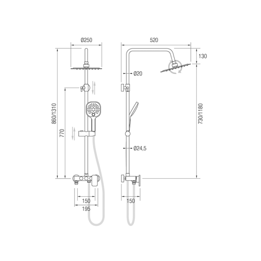 CARACTÉRISTIQUES DU set de douche avec mitigeur monocommande Divira: