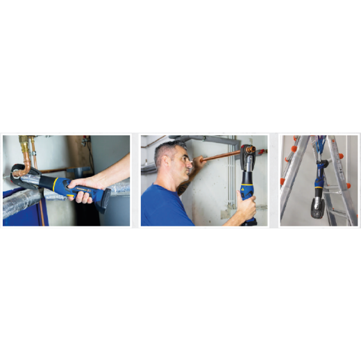 La nouvelle Klauke MAP115 MINI ouvre un boîtier antichoc plus compact, plus léger et plus compact; Machine, batterie, mâchoire universelle et inserts.