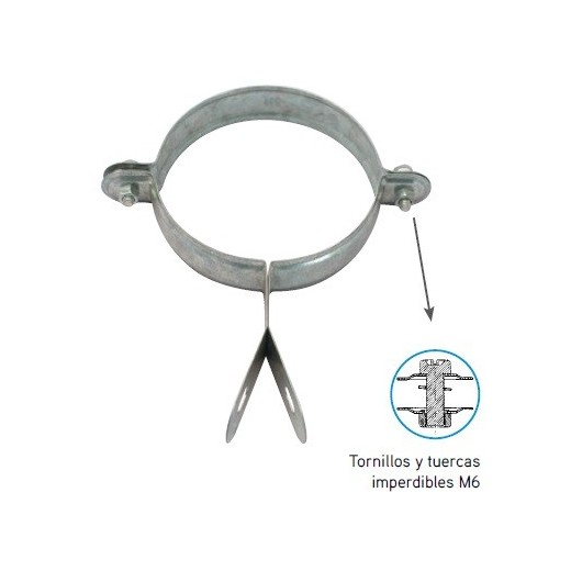La superior esta provista de dos perforaciones laterales pasantes, sobre ellas van dos tornillos M-6 con arandelas imperdibles de forma que quedan unidas a la semicircunferencia.