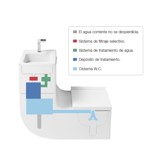 Grâce à un système de réutilisation de l’eau ROCA ingénieux et récompensé, des économies d’eau et d’espace spectaculaires sont obtenues.