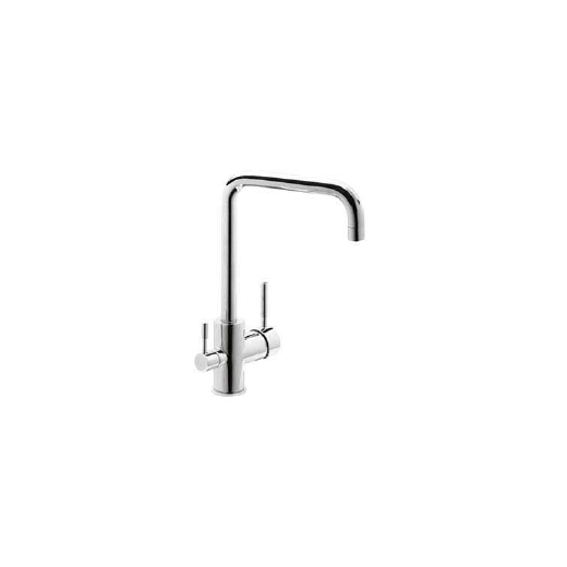 Grifo monomando de 3 vías para equipo de ósmosis inversa con caño rectangular de acero inoxidable.