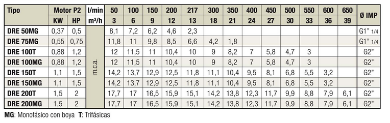- Las versiones monofásicas están equipadas con flotador de serie.