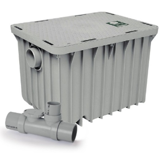 Está especialmente diseñado para interceptar y retener aceites y grasas mezcladas con el agua e impedir que vayan a las redes generales de alcantarillado.