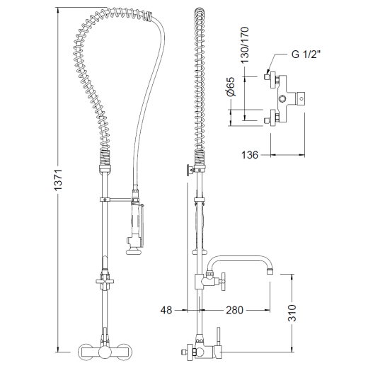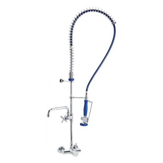 Torneira misturadora de parede: cozinha profissional para uso com bica ou coluna. Corpo em latão CC754S cromado de acordo com a EN 248. Equipado com cartucho misturador cerâmico D40 e válvulas de retenção. Inclui todos os elementos de fixação.