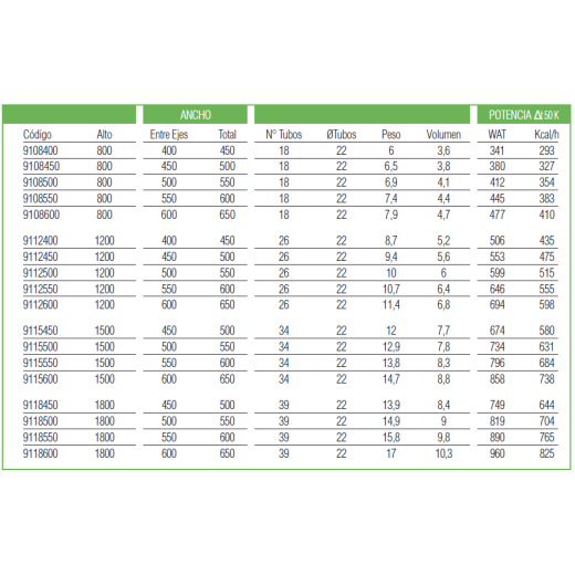 CARACTERÍSTICAS Radiador de toalha BASIC GREEN-CALOR: