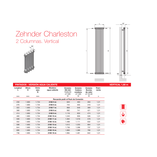 Radiador Decorativo Zehnder Charleston 2 Columnas Horizontal