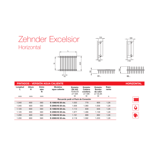 Radiador Decorativo Zehnder Charleston 4 Columnas Horizontal