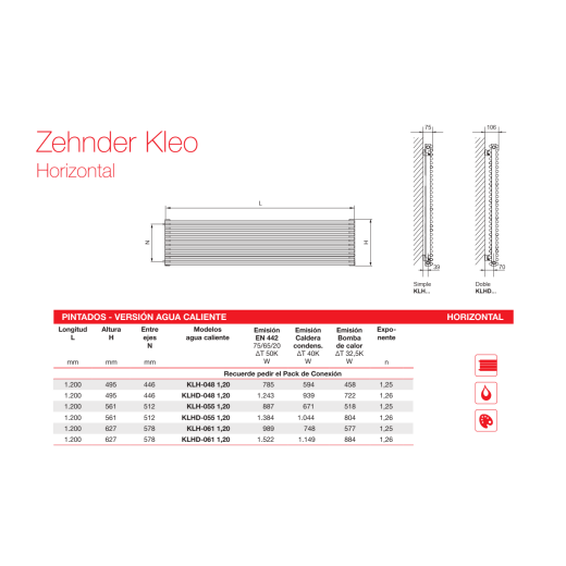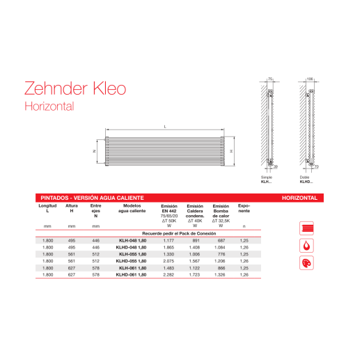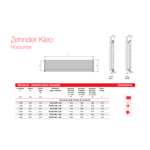 Radiador Decorativo Zehnder Charleston 4 Columnas Horizontal