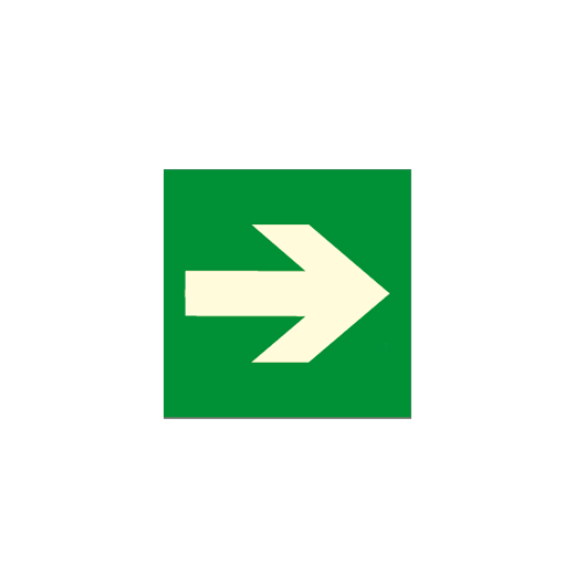 Cartel fotoluminiscente con el simbolo de la flecha hacia la derecha.