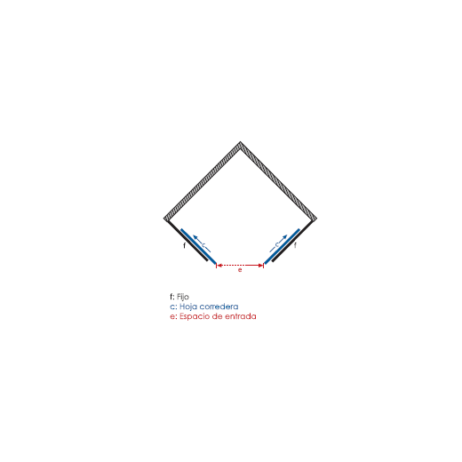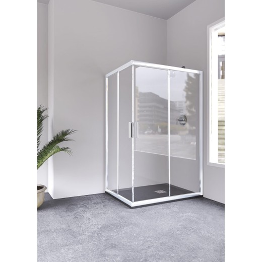Resguardo angular para chuveiro composto por 2 portas fixas e 2 portas deslizantes com guias inferiores (mancal inferior removível).