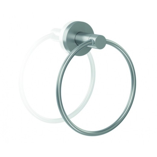 El aro para toallas está fabricado en acero inoxidable AISI 304 y de 160 mm. de diámetro y gira libremente sobre el eje del cilindro central gracias a dos casquillos plásticos de deslizamiento.